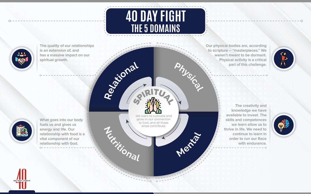 So, for 40 days, you will invite God into this journey by focusing on these 5 areas: